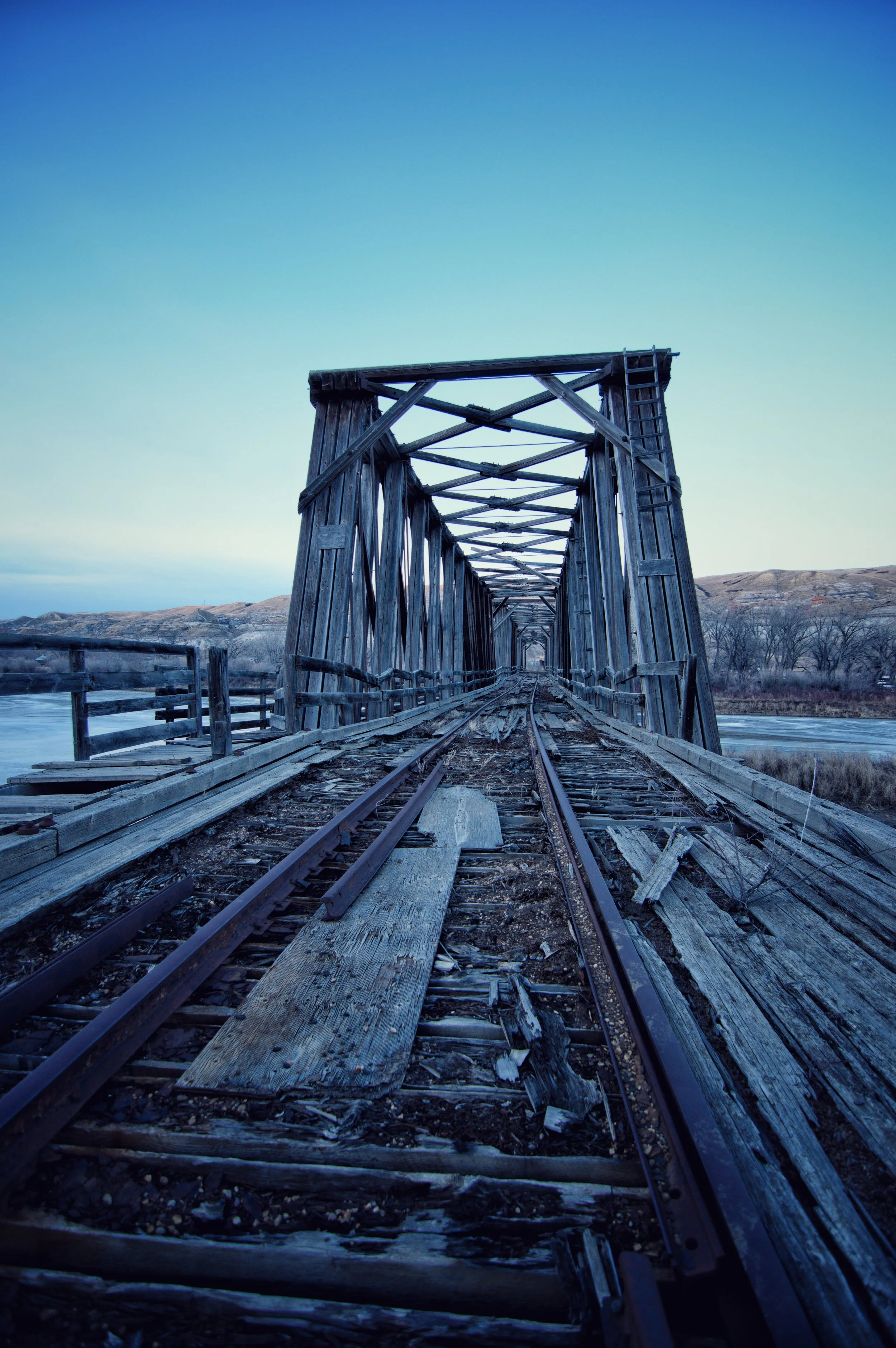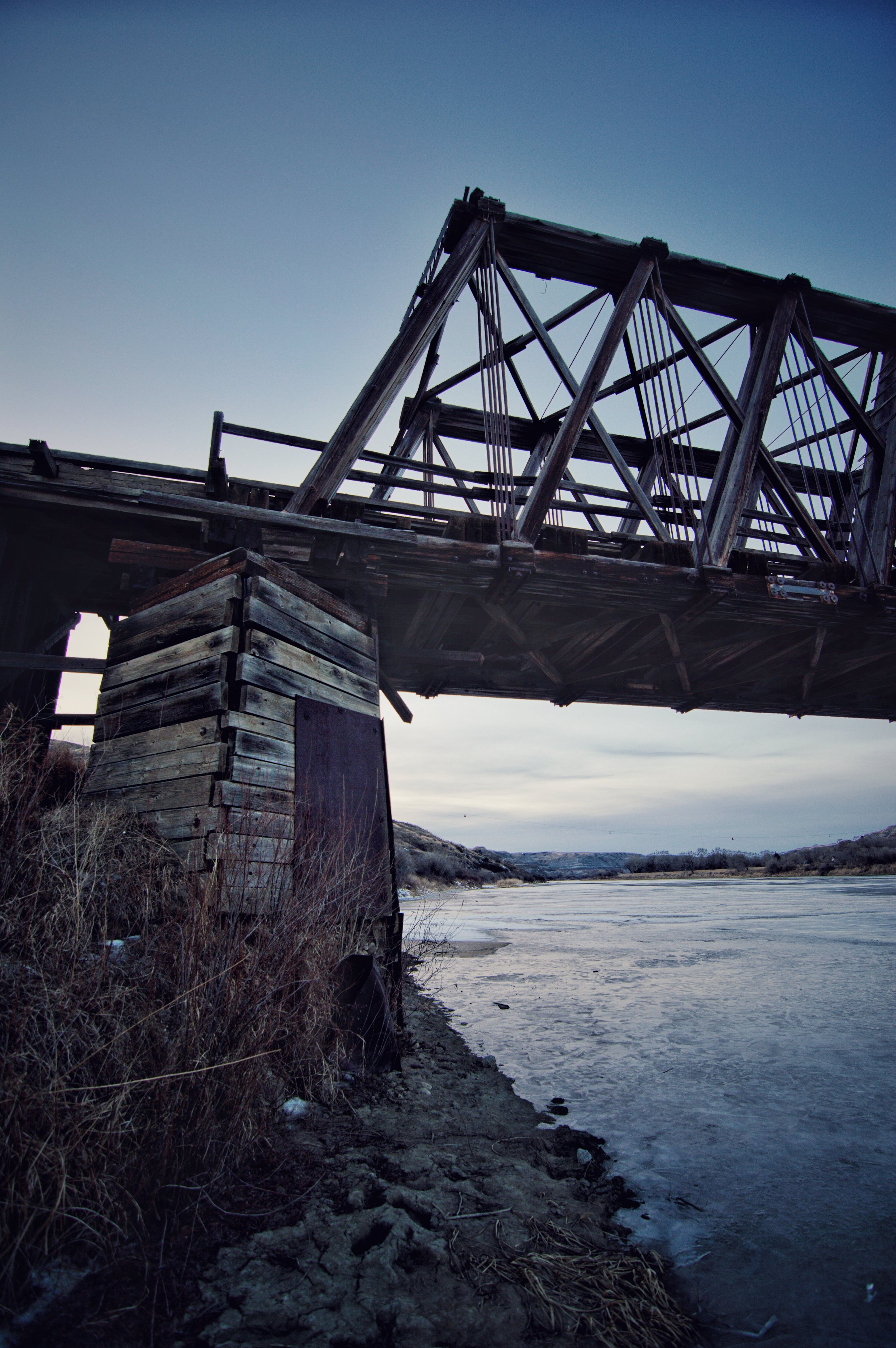 The Atlas coal mine (now a historic site I recommend visiting) firing up the same year, both CN and CPR rail needed access to ship its vast coal reserves across Canada. The shared rail line used across this bridge proved to be the perfect asset to accomplish this task. Mother nature as we know can be brutal and in 1948 the bridge was heavily damaged due to heavy ice flows – but it wasn’t down for long and rebuilt shortly thereafter. With the demand of coal dropping, and the town dying off – the mine shutdown in 1979, and along with it the bridge.