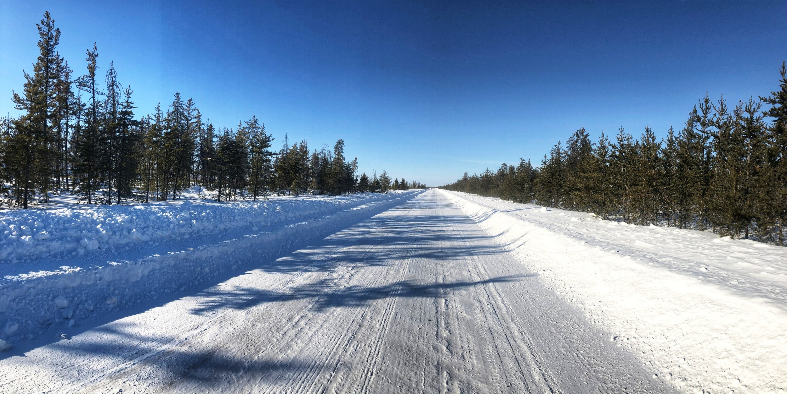 The plowed lanes were wide — up to eight across — allowing both commercial and passenger vehicles to pass with ease. Speeds of 100–110 km/h were possible in the open stretches, though caution was always in the back of our minds.